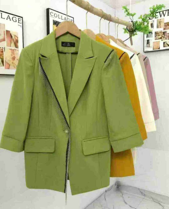 品牌白领高级中袖西装,清18.8珍珠单扣流梳款式,双前...