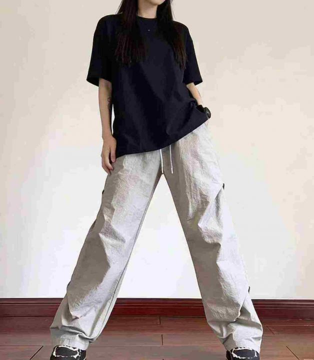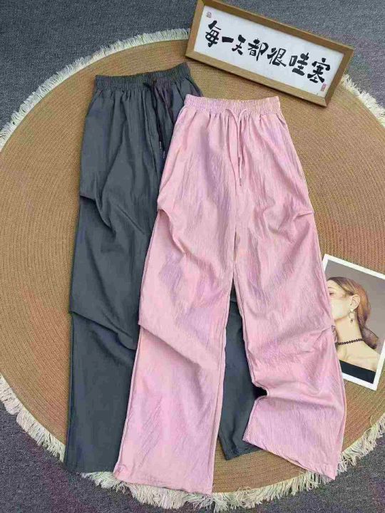 上新全清¥9.9蓝色松紧腰宽松阔腿裤女夏薄款遛弯裤子复古休闲裤!独立包装....