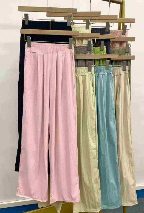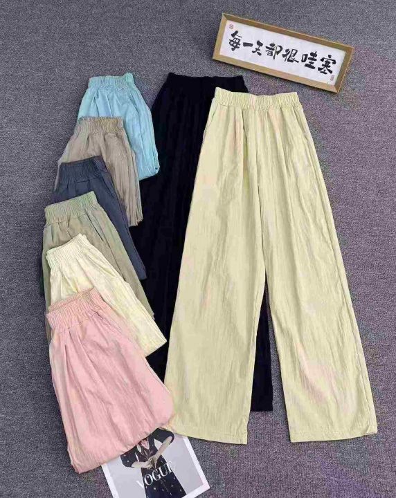 上新全清¥9.9蓝色松紧腰宽松阔腿裤女夏薄款遛弯裤子复古休闲裤!独立包装....