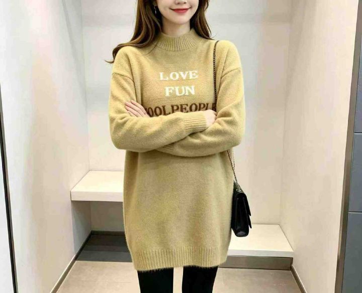 秋冬新款字母提花加厚防水貂绒中长款套头毛衣,独立包装,均码面料软糯厚实有弹力,120件左右,全清8.9元超低价秒杀!