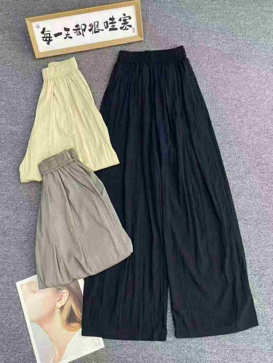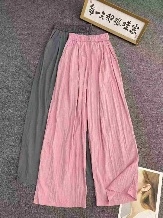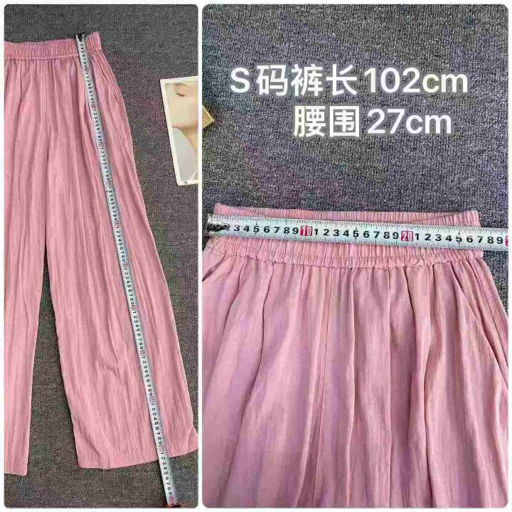 上新全清¥9.9蓝色松紧腰宽松阔腿裤女夏薄款遛弯裤子复古休闲裤!独立包装....