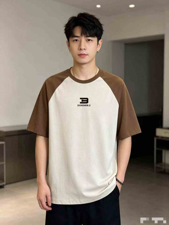 ✅美式街头风复古做旧撞色插肩短袖T恤,2343数量做工...