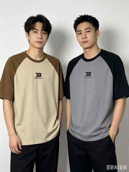 ✅美式街头风复古做旧撞色插肩短袖T恤,2343数量做工...