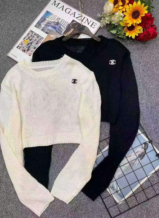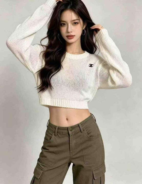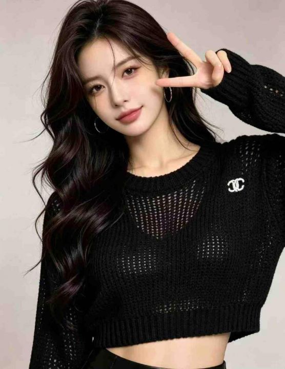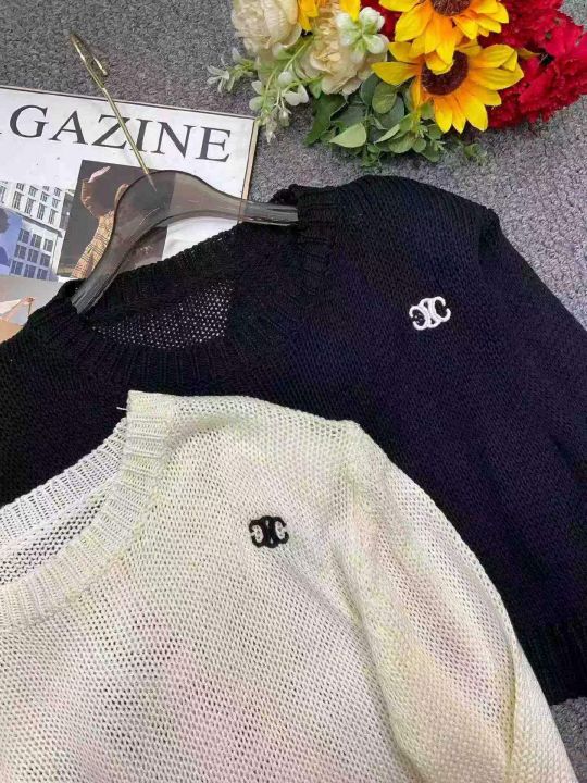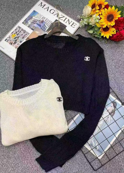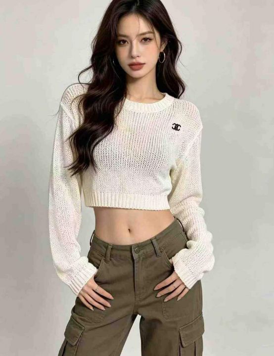 春夏季新款网红镂空钩花刺绣小标长袖针织衫,独立包装...