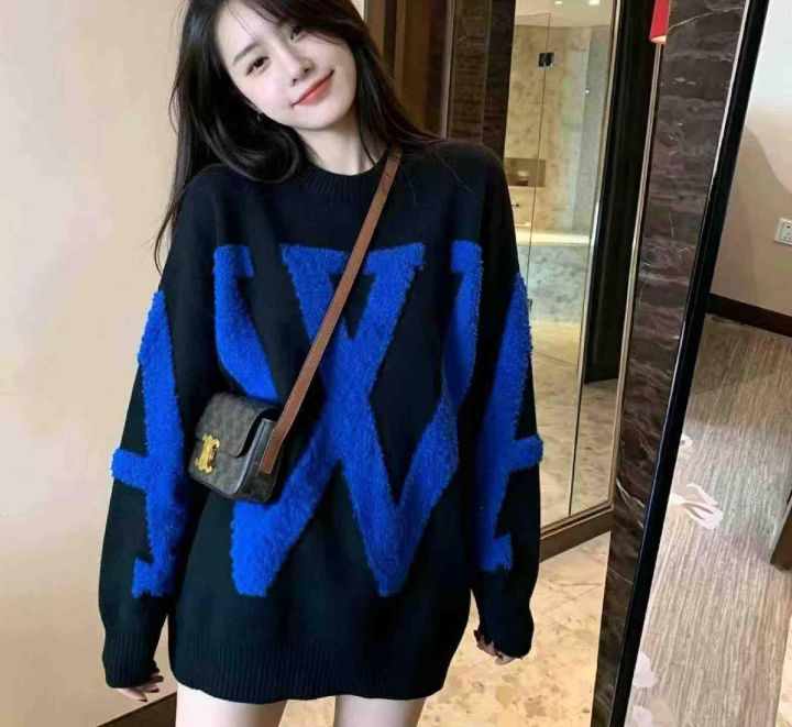秋冬新款韩系高级感穿搭加厚提花慵懒风北极绒套头毛衣...