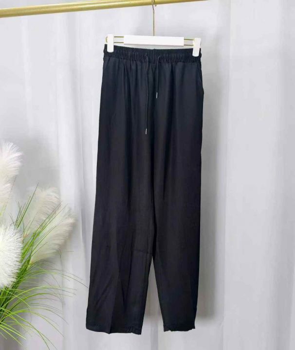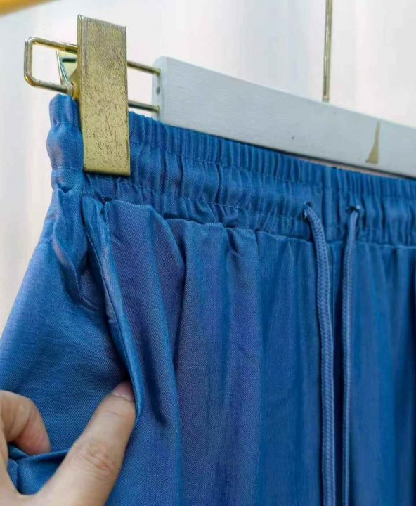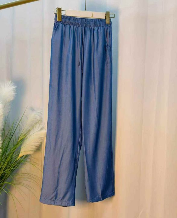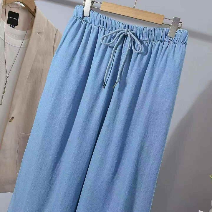 蓝色松紧腰宽松阔腿裤女夏薄款遛弯裤子复古休闲裤!独立包装.货品干净.码数:L—2XL:数量:133件.[庆祝][庆祝]