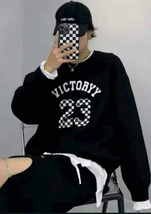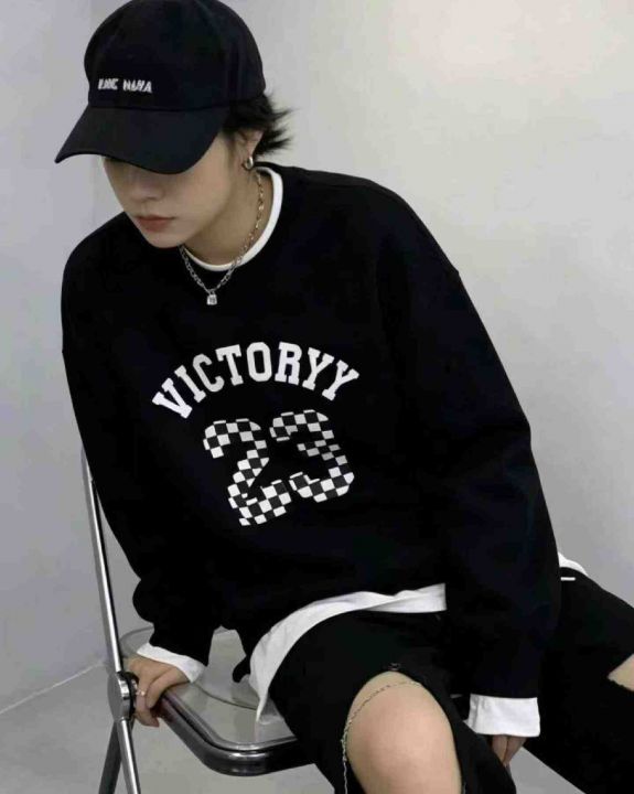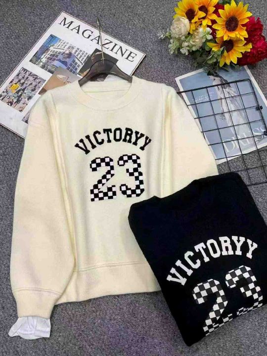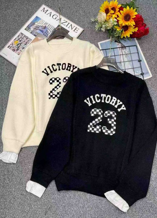 春季新款网红复古假2件子母提花宽松圆领包芯纱套头毛...