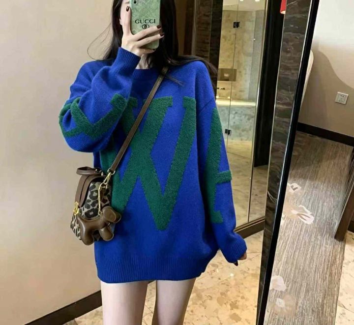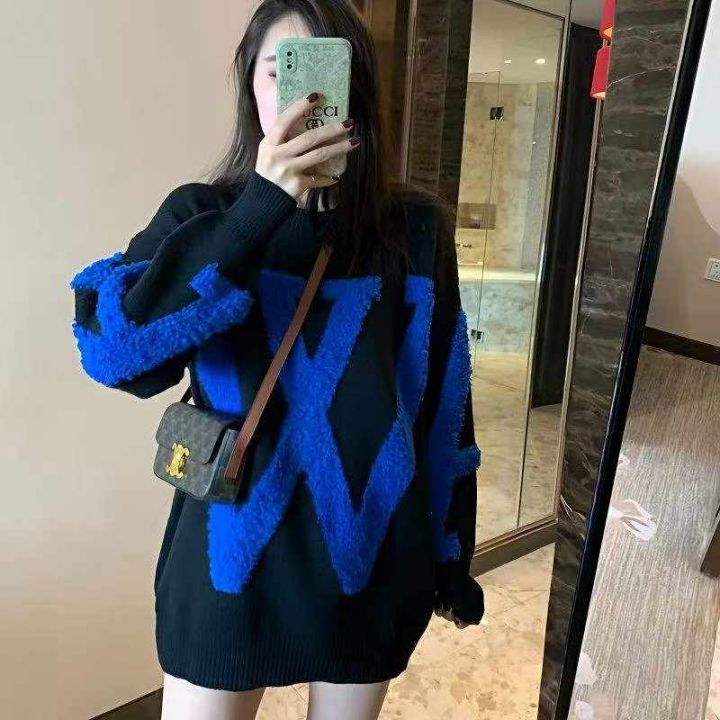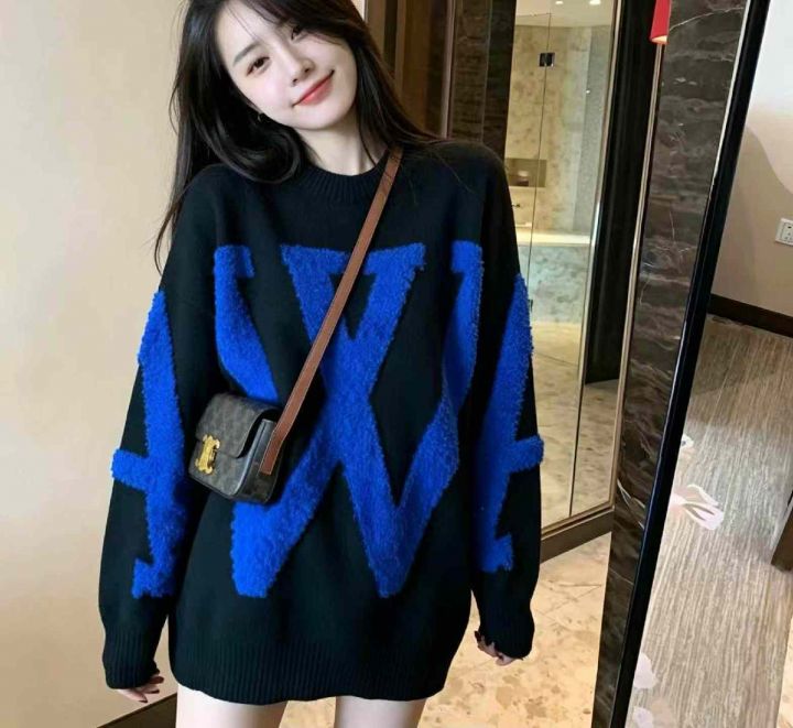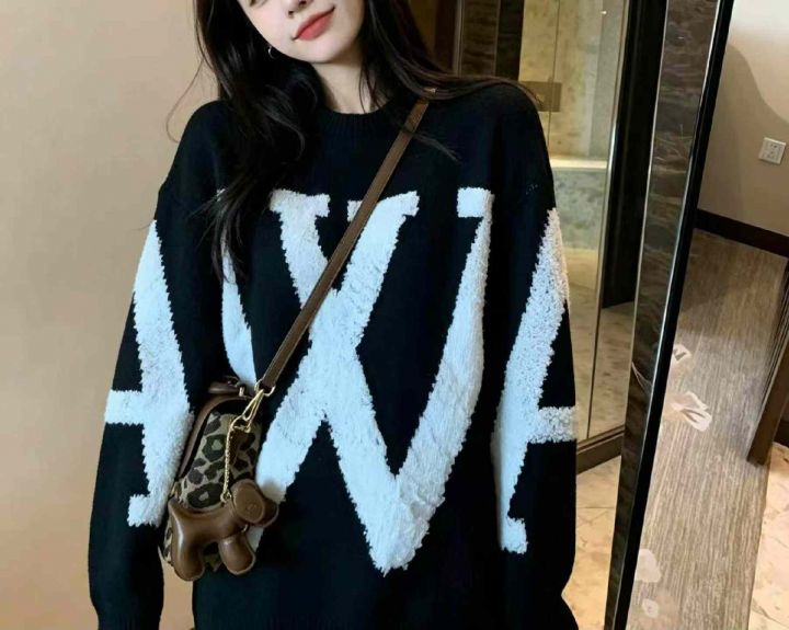 秋冬新款韩系高级感穿搭加厚提花慵懒风北极绒套头毛衣...