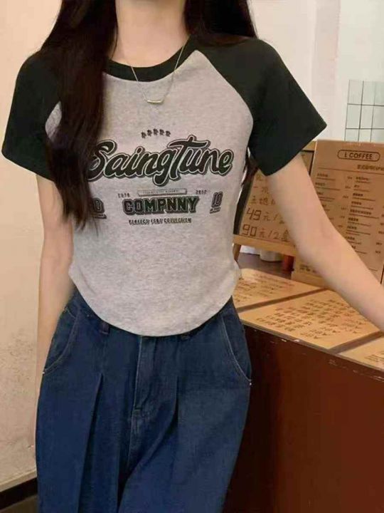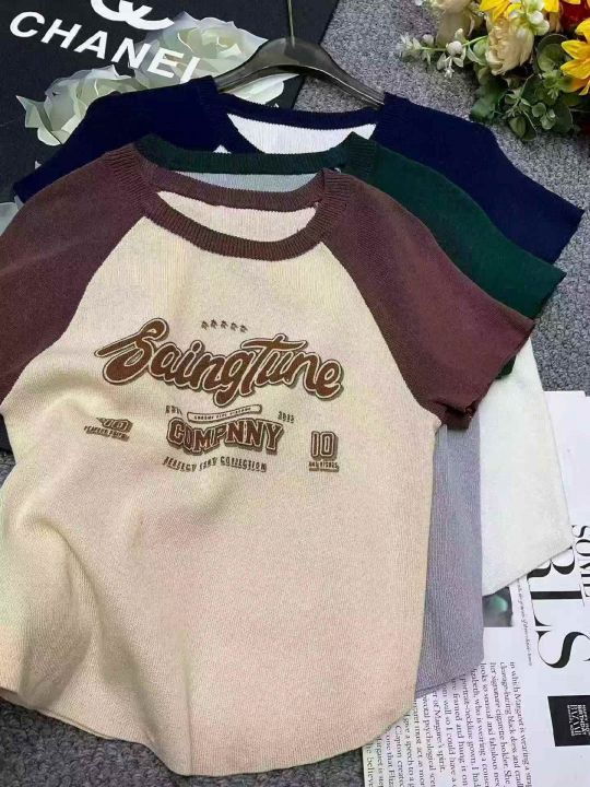 夏季新款美式撞色插肩复古印花针织短袖T桖,独立包装,均码面料柔软舒适弹力大,1930件,全清5.9元超低价秒杀!分货加一!