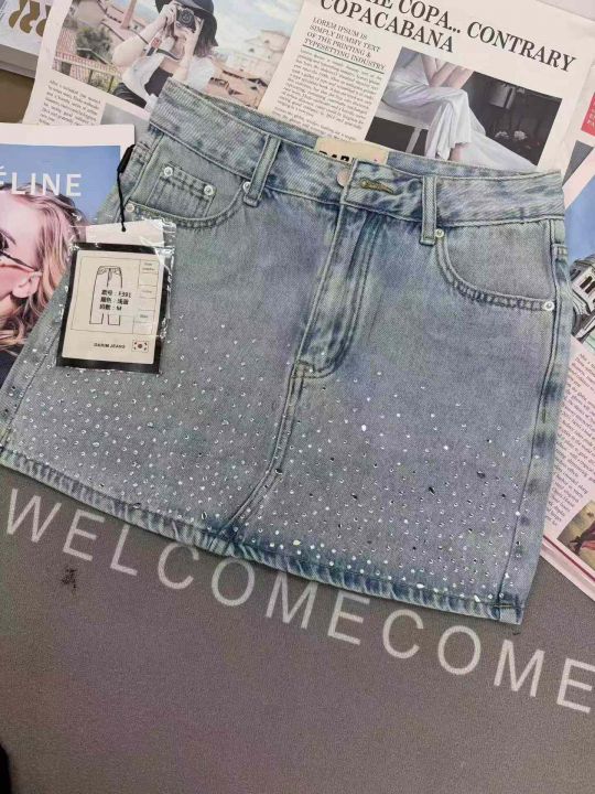 高品质烫钻高腰修身牛仔半身裙,单款单色,独立包装,...