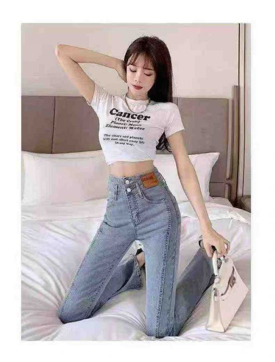 ☕️弹力开叉牛仔裤女高腰紧身显瘦拖地微喇叭裤226条...