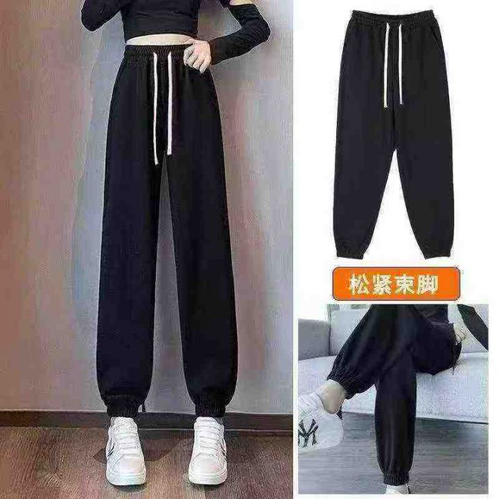 春秋新款品牌外贸原单宽松净版百搭松紧腰束脚纯棉休闲...