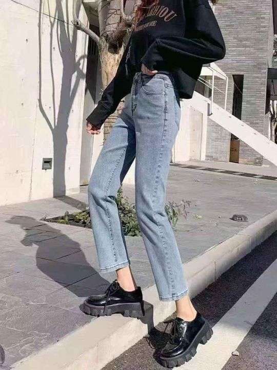 ☕️高弹力浅蓝牛仔裤女直筒宽松新款高腰显瘦老爹牛仔...