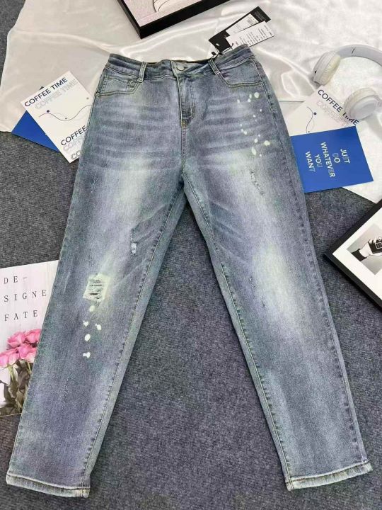 弹力夏季高腰牛仔裤女时尚复古破洞九分老爹裤哈伦显瘦牛仔裤100条全清10.8元,码数25-30,正品独立包装[庆祝][庆祝][庆祝]