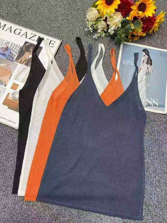 夏季新款网红复古港风细闪设计款冰丝针织吊带背心,独...