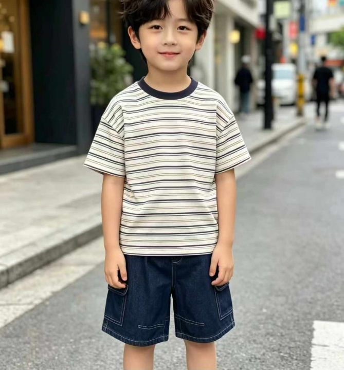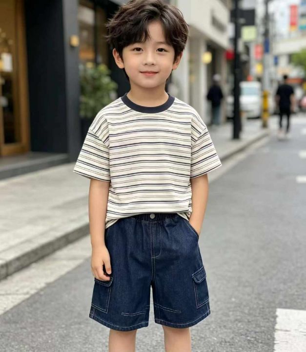 夏季新款男女童童装网红复古洗水棉多袋工装牛仔短裤,...