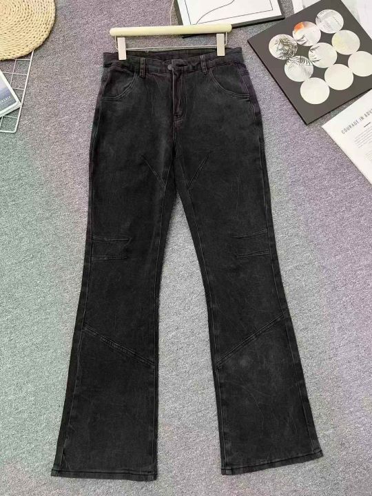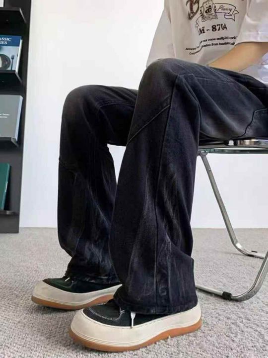 ☕️旧复古拼接直筒宽松百搭长裤潮流美式牛仔裤子小众...
