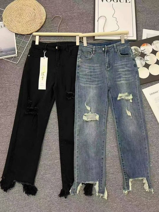 ☕️弹力牛仔裤女薄款破洞乞丐九分裤直筒裤高腰显瘦微喇裤24条全清9.8元,码数S到4XL,正品独立包装,单款2色[庆祝][庆祝][庆祝]