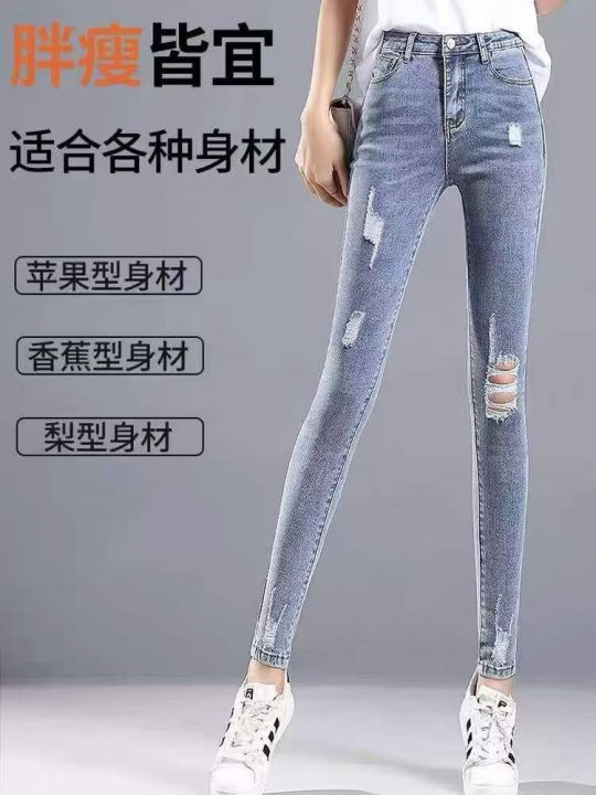 ☕️弹力破洞牛仔裤女新款高腰显瘦弹力紧身乞丐小脚铅...