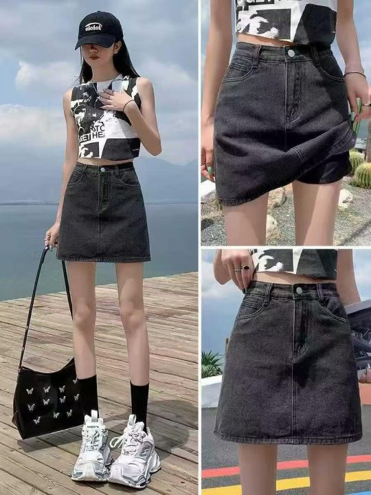 ☕️灰色牛仔短裙女半身裙夏季高腰显瘦a字包臀裤裙296...
