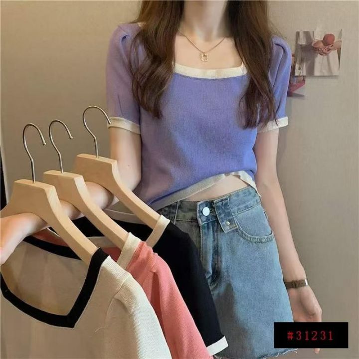 夏季新款大码宽松弹力显瘦方领冰丝针织短袖,独立包装,均码面料柔软舒适弹力,宽松版,单款3色米色黑色多,5300件,全清5.9元超低价秒杀!分货加一!@_@