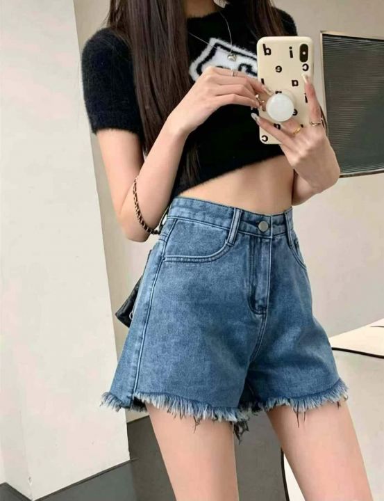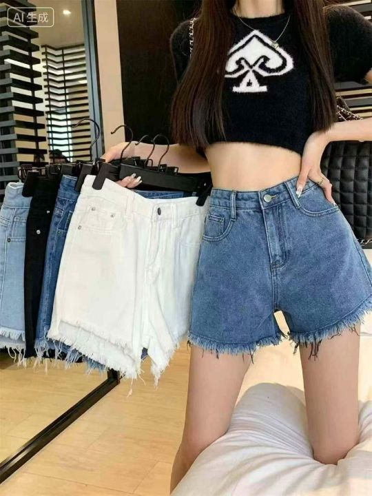 夏季新款设计款毛边洗水棉牛仔短裤,独立包装带腰卡,...
