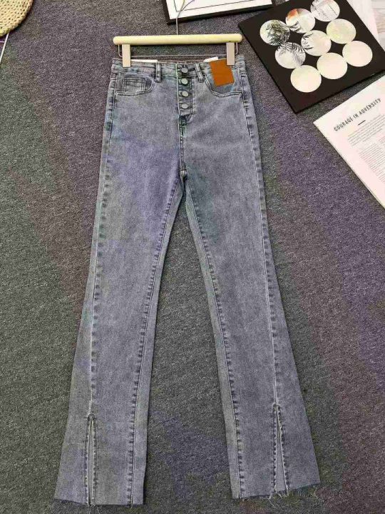 ☕️弹力开叉牛仔裤女高腰紧身显瘦拖地微喇叭裤226条...