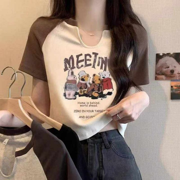 夏季新款美式撞色插肩复古印花针织短袖T桖,独立包装,均码面料柔软舒适弹力大,1090件,全清5.9元超低价秒杀!分货加一!