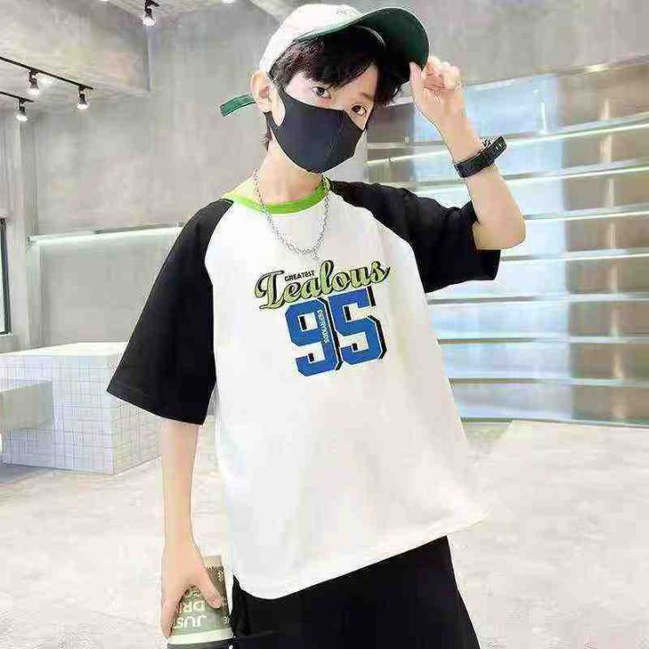 数字英文字母印花童装帅气T恤 数量500件左右 码数110--160 整款单色 后领包边 独立包装带吊牌 模特图供参考