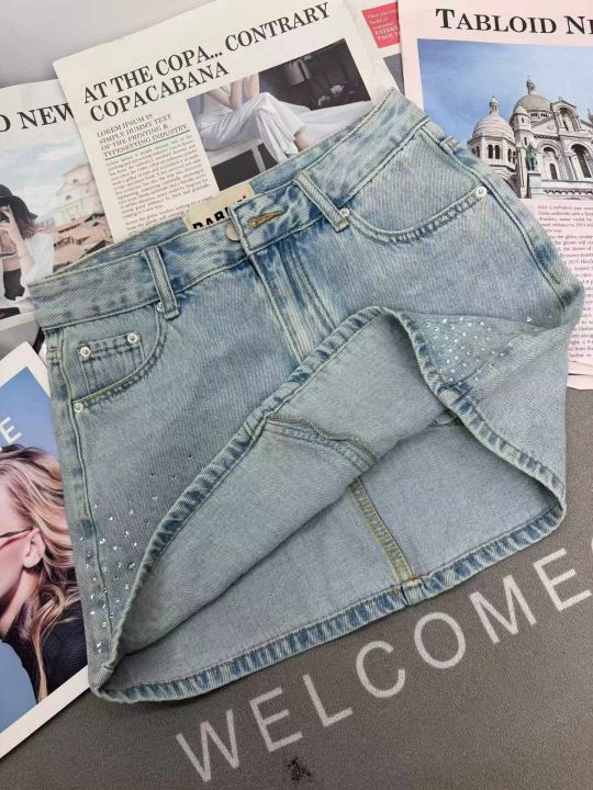 高品质烫钻高腰修身牛仔半身裙,单款单色,独立包装,...