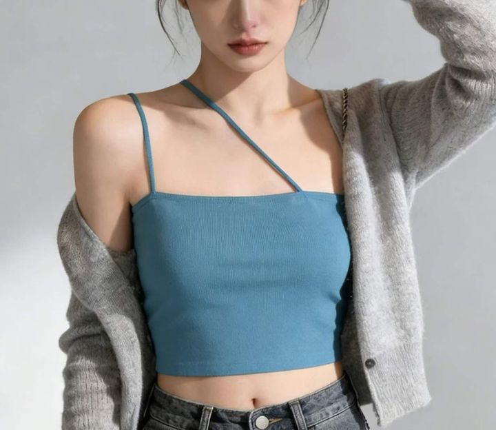 夏季新款品牌原单辣妹性感别致挂脖式斜肩冰丝针织吊带,独立包装带吊牌,均码面料柔软舒适弹力大,965件,全清4.9元超低价秒杀!分货加一!