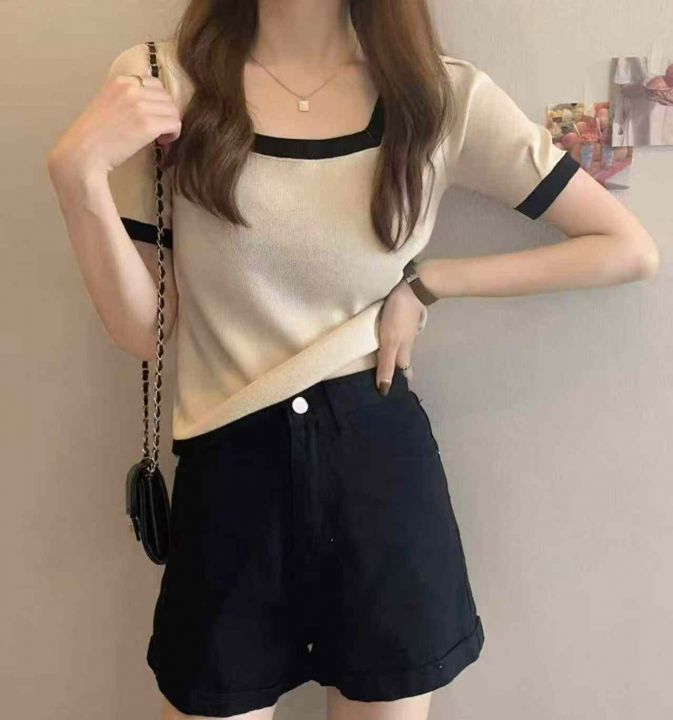 夏季新款大码宽松弹力显瘦方领冰丝针织短袖,独立包装,均码面料柔软舒适弹力,宽松版,单款3色米色黑色多,5300件,全清5.9元超低价秒杀!分货加一!