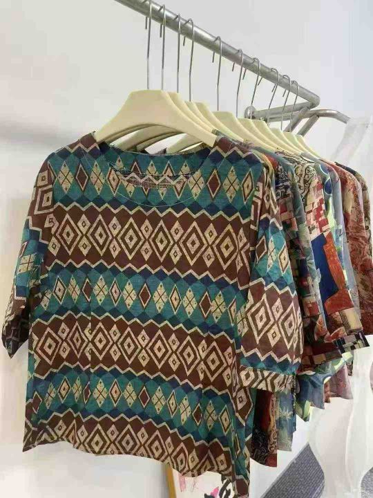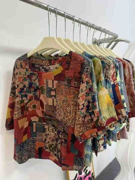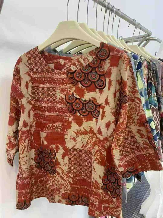 杭派高品质妈妈棉麻系列中袖☕️995件全清9.9 分货+1 ,均码80-130斤,小整十几个花型,精品独立包装,夏季宽松五分袖妈妈显瘦上衣棉麻上衣新款民族风短袖T恤