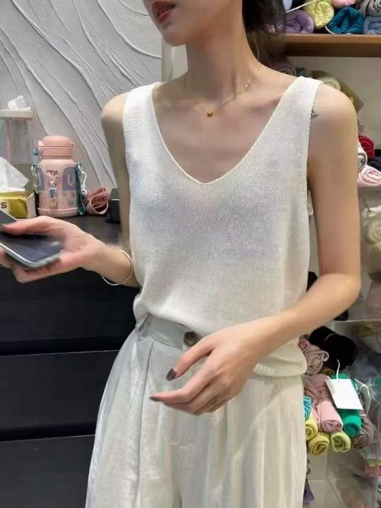 夏季新款小众高级感天丝亚麻V领坎肩针织背心,独立包装,均码面料柔软舒适...