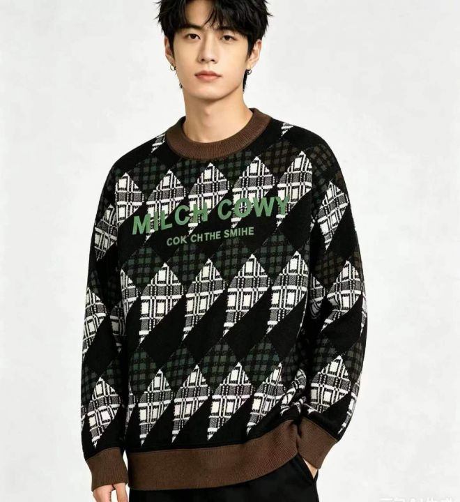 秋冬新款欧货字母提花加厚时尚个性男女同款圆领套头毛衣,独立包装,均码面...