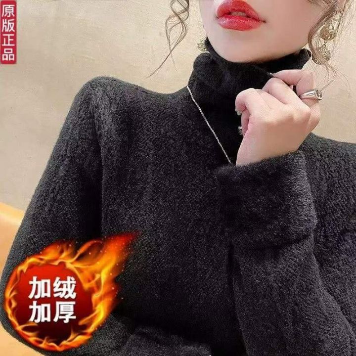 冬季新款品牌原单高级感设计款高领加绒一体绒包芯纱套头毛衣,独立包装带吊...