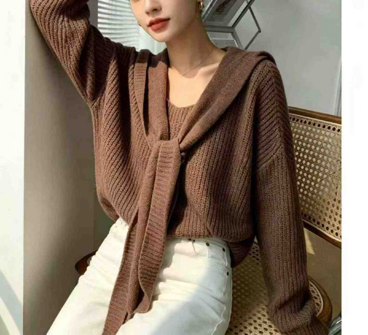 春季新款假2件设计款净版宽松百搭针织毛衣,独立包装,均码面料柔软舒适有弹力,132件,全清6.9元超低价秒杀!