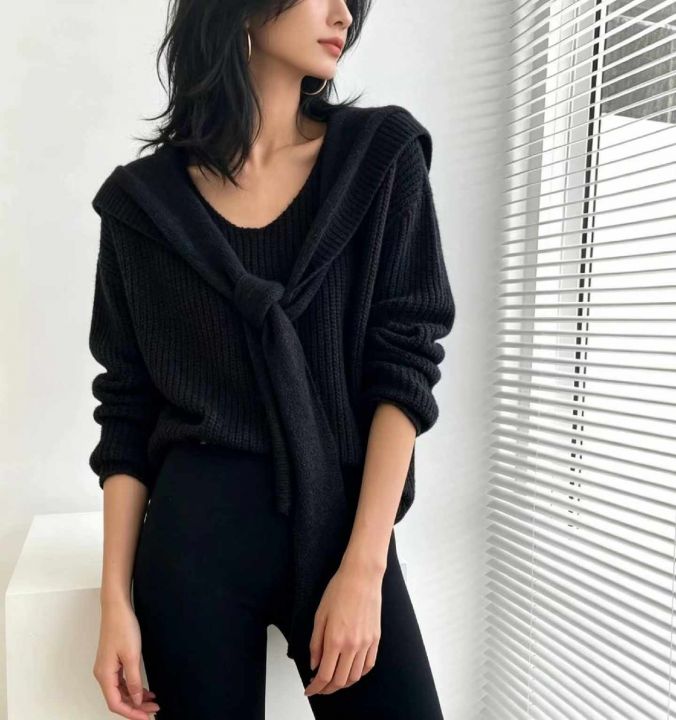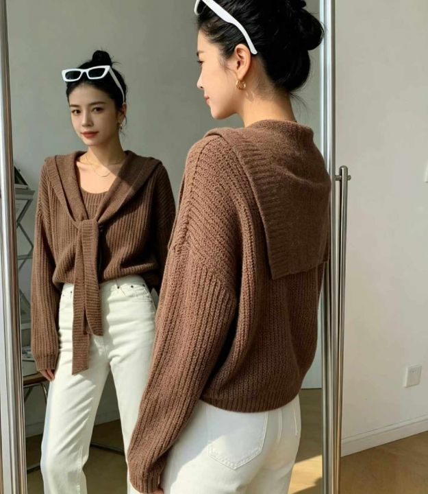 春季新款假2件设计款净版宽松百搭针织毛衣,独立包装...