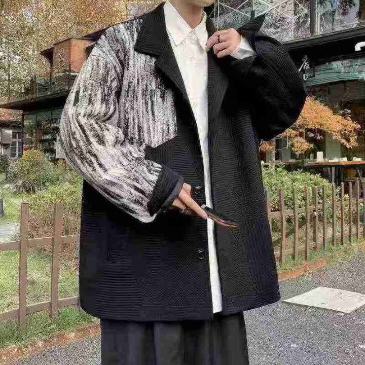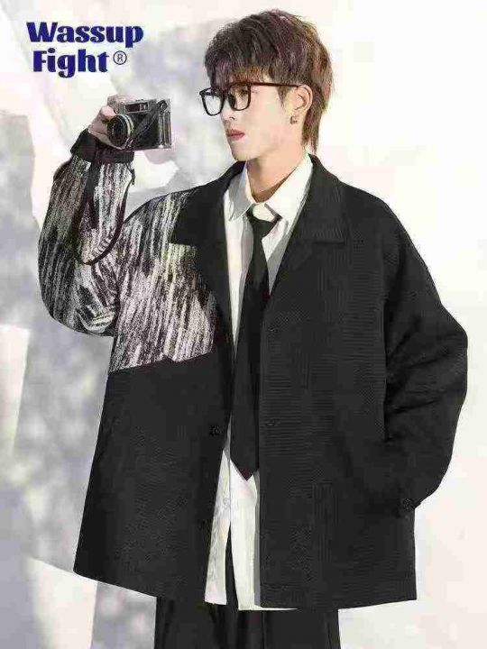 ☕️男装外套高级感痞帅西服拼接工装夹克外套176件全...