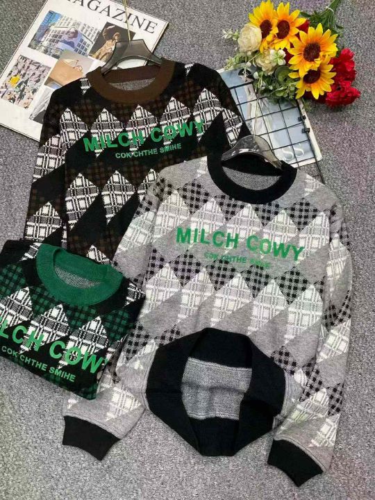 秋冬新款欧货字母提花加厚时尚个性男女同款圆领套头毛衣,独立包装,均码面料软糯厚实有弹力,190件,全清8.9元超低价秒杀!