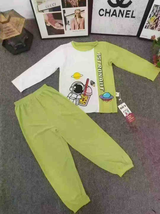 品牌童装长袖家居服套装,数量200套左右,尺码90--150,大码多,整款单色两个品牌,独立包装带吊牌,货品整洁质佳