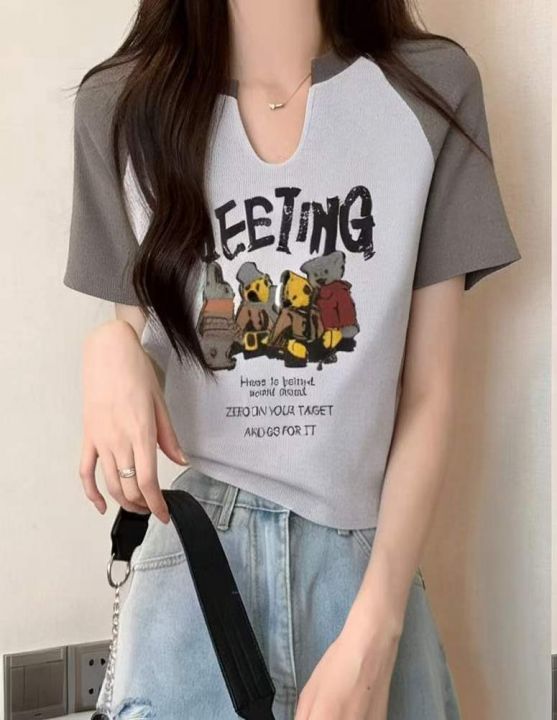 夏季新款美式撞色插肩复古印花针织短袖T桖,独立包装,均码面料柔软舒适弹力大,1090件,全清5.9元超低价秒杀!分货加一!