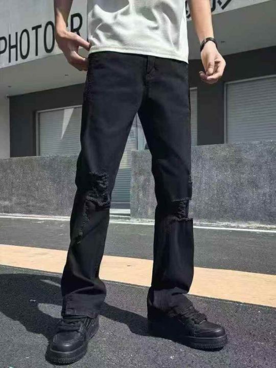 破洞牛仔裤男士夏季薄款美式高街复古潮牌宽松百搭直筒...