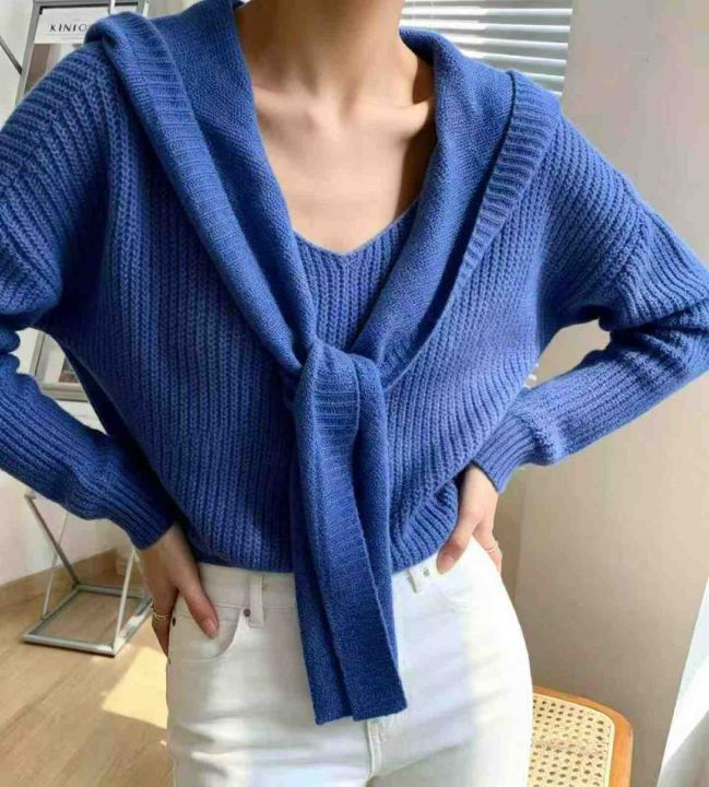春季新款假2件设计款净版宽松百搭针织毛衣,独立包装,均码面料柔软舒适有弹力,132件,全清6.9元超低价秒杀!