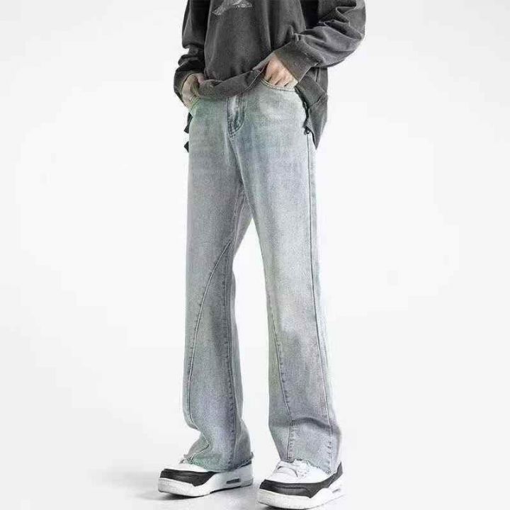 潮牌男装微喇叭直筒牛仔裤 80件,全清12.8元 ,不分货,码数:S.M,正品独立包装,货品干净,美式高街vibe牛仔裤男潮牌复古水洗浅色宽松直筒微喇休闲长裤