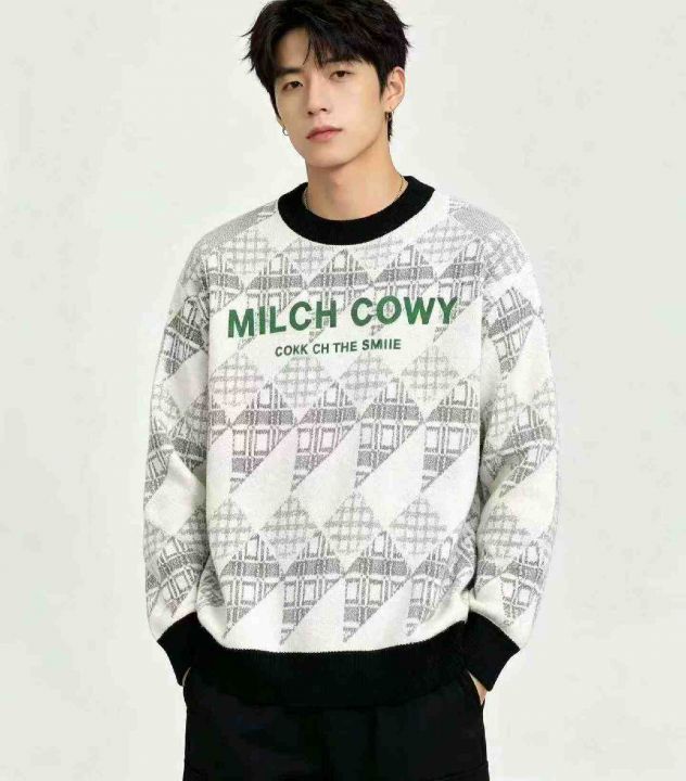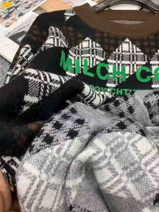 秋冬新款欧货字母提花加厚时尚个性男女同款圆领套头毛衣,独立包装,均码面料软糯厚实有弹力,190件,全清8.9元超低价秒杀!