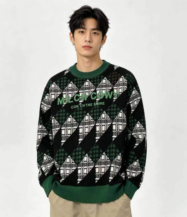 秋冬新款欧货字母提花加厚时尚个性男女同款圆领套头毛...