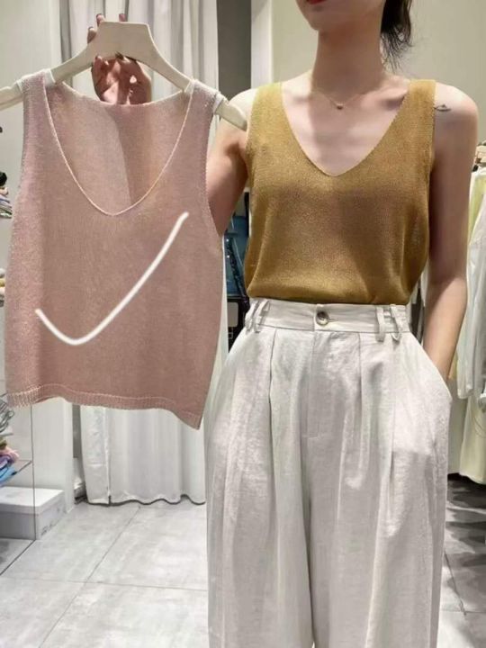 夏季新款小众高级感天丝亚麻V领坎肩针织背心,独立包...