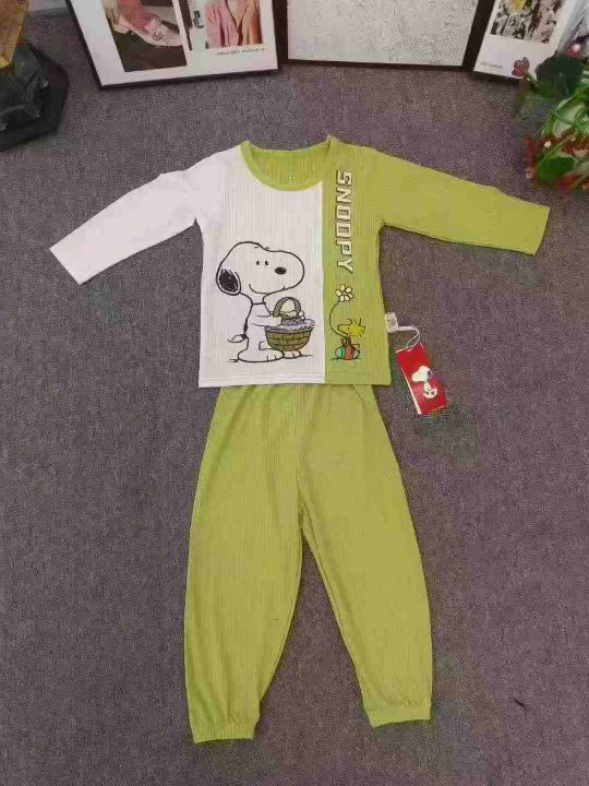 品牌童装长袖家居服套装,数量200套左右,尺码90--150,大码多,整款单色两个品牌,独立包装带吊牌,货品整洁质佳