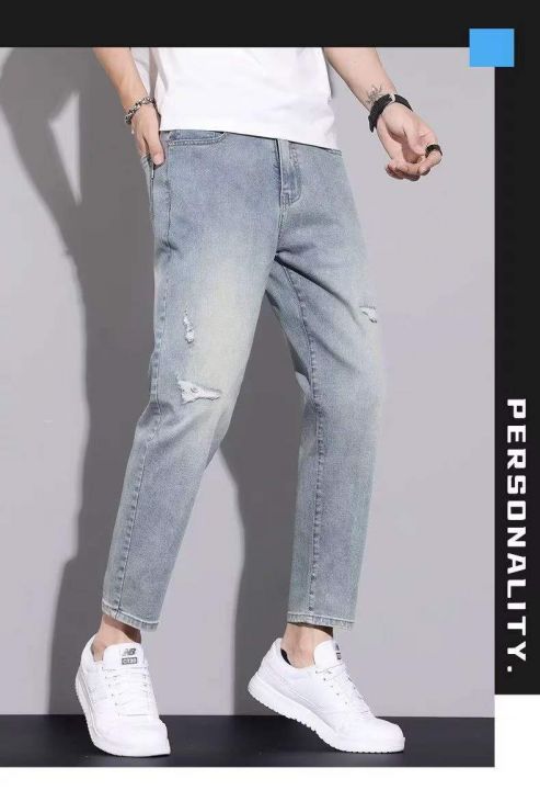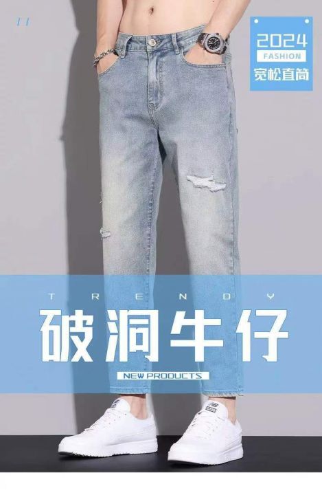 夏季超薄牛仔裤男士宽松直筒九分裤子新款弹力小脚破洞休闲裤180条全清9.8元,码数25-30,正品独立包装[庆祝][庆祝][庆祝]